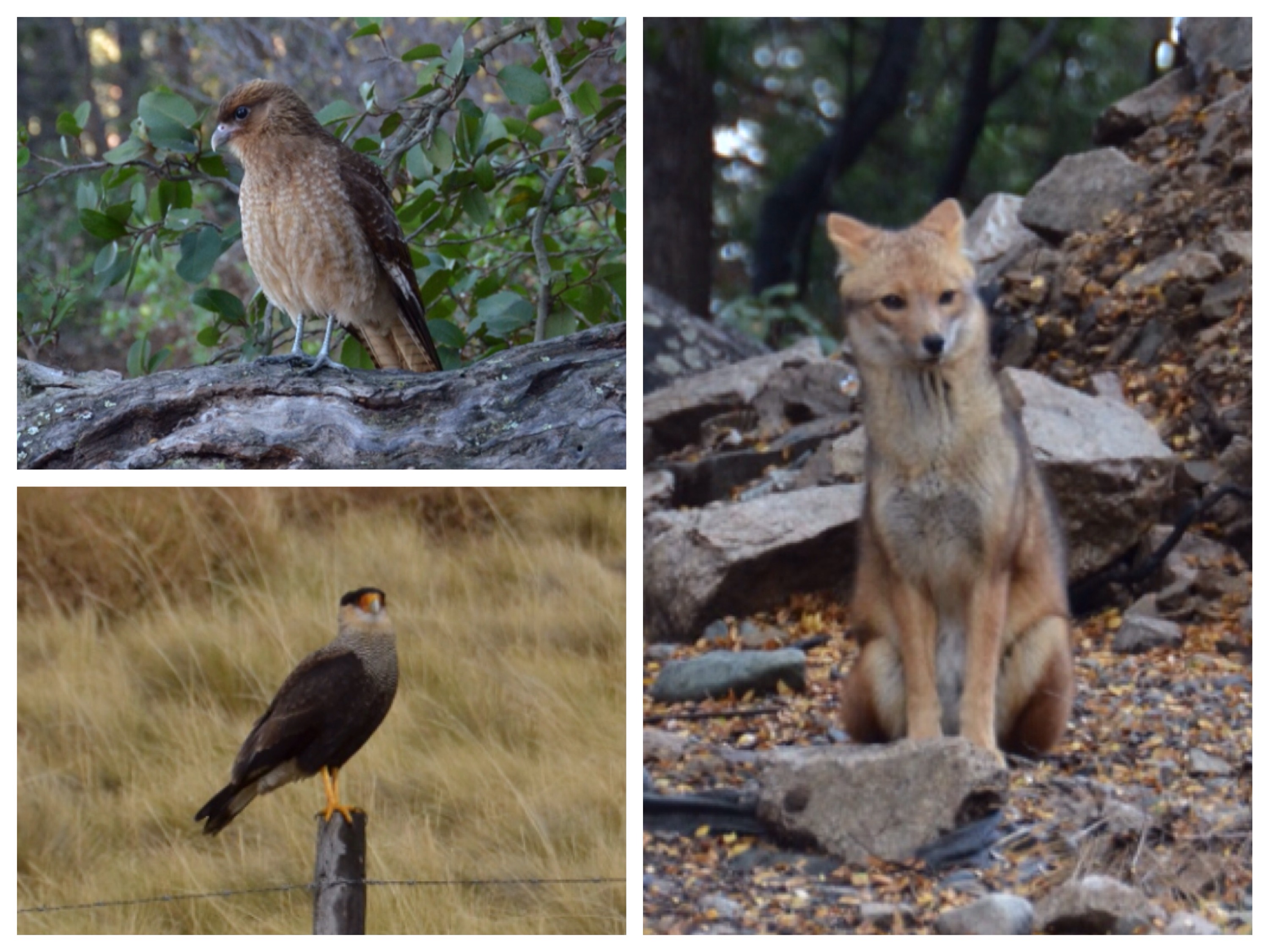 Auf einer guten Schotterpiste fahren wir dem Lago Futalaufquen entlang und geniessen die wunderschöne, sehr wilde und rauhe Landschaft. Plötzlich stoppt vor uns der Pick-Up, der uns eben überholt hat. Ein neugieriger Fuchs lugt am Strassenrand hinter einem Erdwall hervor.