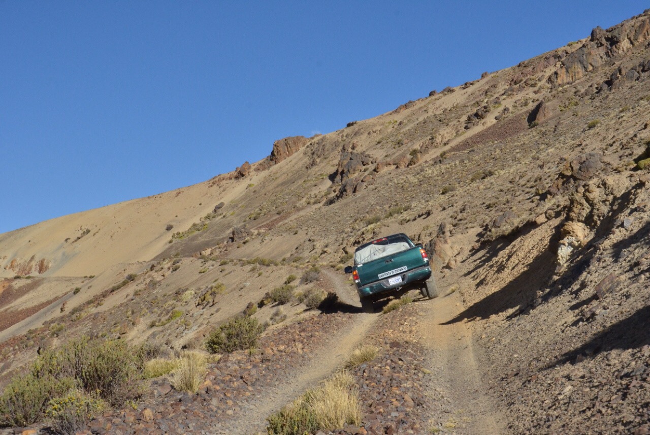 Aber allen nicht-Mamis wollen wir unsere abenteurlichsten Autokilometer nicht vorenthalten. Der Shortcut, den Jesus nehmen will ist eigentlich eine gute Idee, so spart man sich die lange Fahrt zurück nach und durch El Alto. Eigentlich. Ist die Strasse zu Beginn einfach sehr holprig, ist sie doch noch als Strasse erkennbar.