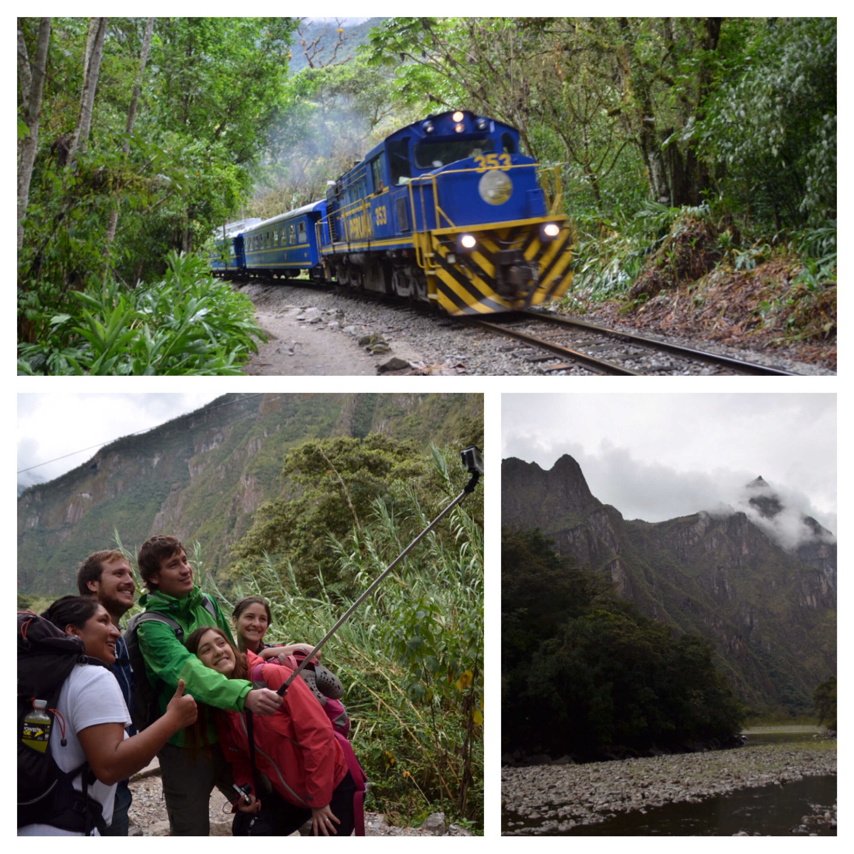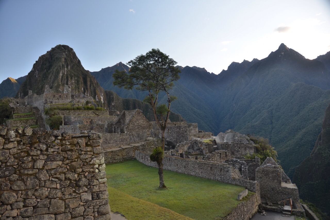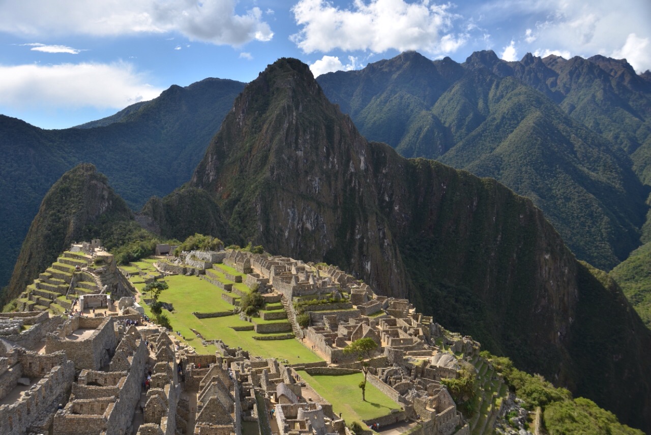 Aber von nun an behalten wir den festen Boden unter den Füssen. Gestärkt mit einem Mittagsmenü, an dessen ‘kleine Grösse’ sich unsere Velomägen erst gewöhnen müssen, heisst es heute nochmals wandern. Dieses Mal nicht entlang eines Inka-Pfades, dafür den Bahngeleisen entlang in Richtung Aguas Calientes. Die bis zu den Gipfeln bewaldeten Berge haben zusammen mit den tiefhängenden Wolken etwas Magisches. Einmal auf den Schienen, einmal rechts, einmal links im Schotter laufen wir unserem Tagesziel entgegen. Vertieft in Gespräche mit unserer super Latino-Gruppe verstreichen die drei Stunden im Flug. Als einzige Gringos lernen wir nochmal das eine oder andere über den Kontinent und verstehen jetzt nicht nur die Neckereien unter den Ländern und ihren Akzenten, sondern erkennen auch den einen oder anderen Musikhit aus den Handylautsprechern bei den ersten Tönen.Der Wecker klingelt nochmals sehr früh. Heute nicht für einen besonders hohen Gipfel, dafür für eines der sieben Weltwunder – Machu Pucchu. Um halb fünf stellen wir uns mit einer riesigen Tourischar in die Schlange. Zagg, um fünf geht das Tor auf, die personalisierten Tickets werden kontrolliert und die Leute hasten los, als gäbe es etwas zu gewinnen. Je mehr Treppenstufen wir hinter uns bringen, umso mehr Touristen sitzen am Wegrand. Oben beim zweiten Checkpoint angekommen, erwartet uns eine gigantische Schar Bus-Touristen. Doch Abi lässt uns die Menschenmenge schnell vergessen und führt uns noch vor Sonnenaufgang in die mystische Ruinenstadt ein.