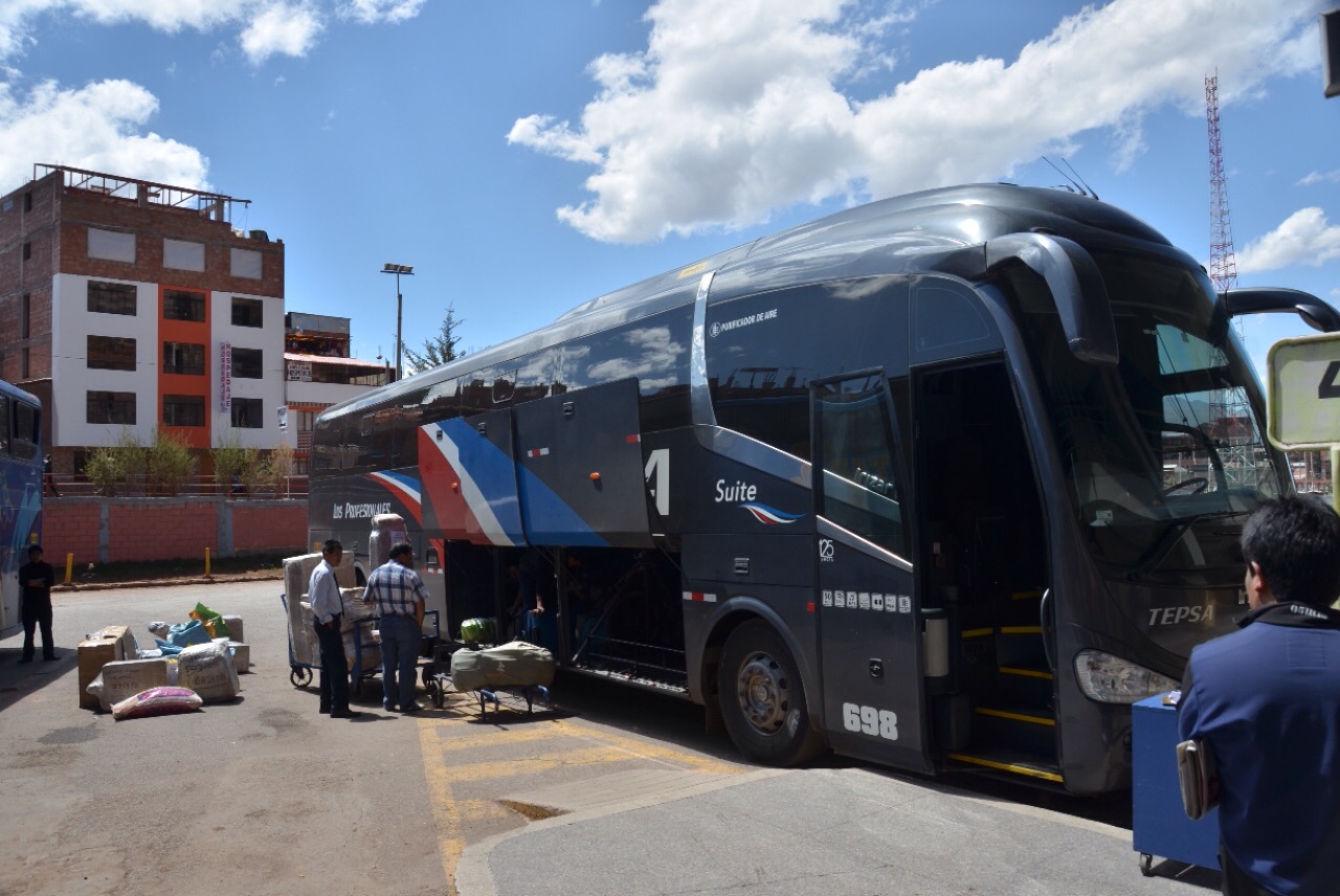 Tepsa. Tönt wie eine Erdölfirma, ist aber die Busgesellschaft, die uns von Cusco nach Lima bringt. Erwartete Fahrzeit: 21 Stunden. Wir hoffen, dass die Firma mit ihrem Werbeslogan – “Los Profesionales” – nicht zuviel verspricht. Die erste positive Überraschung erwartet uns bereits am Busbahnhof, unsere Fahrräder werden für einmal anstandslos akzeptiert und sortfältig im Bauch des Buses verstaut.